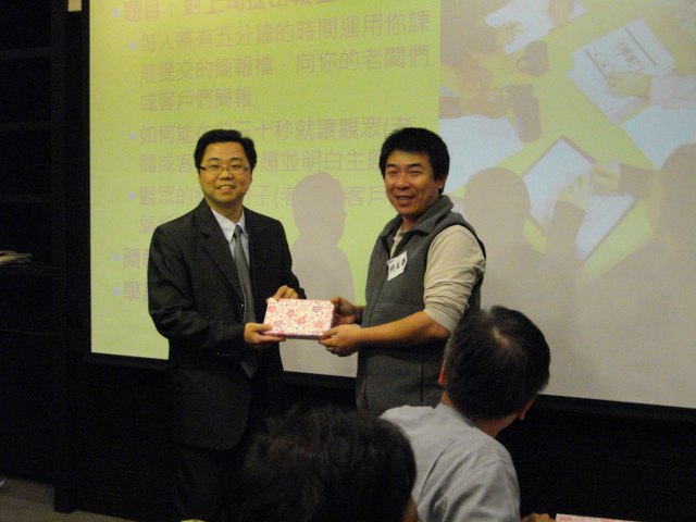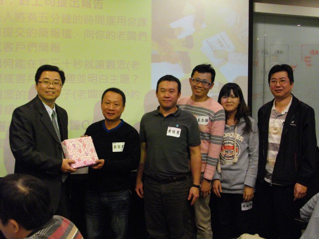 學員以實際案例實作簡報,學員在簡報中竟然輔以最新的平板電腦展示,博得滿堂彩