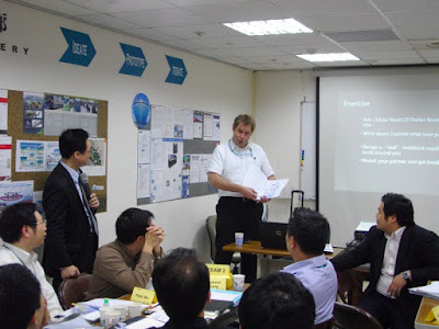 1. 繼去年上課之後,今年客戶繼續邀約,但這次的課程,客戶要求以全英文授課,主要是因為學員中有德國人、印度人與美國同事,大家都以英文共同學習與分享設計思考如何應用到實務工作中。