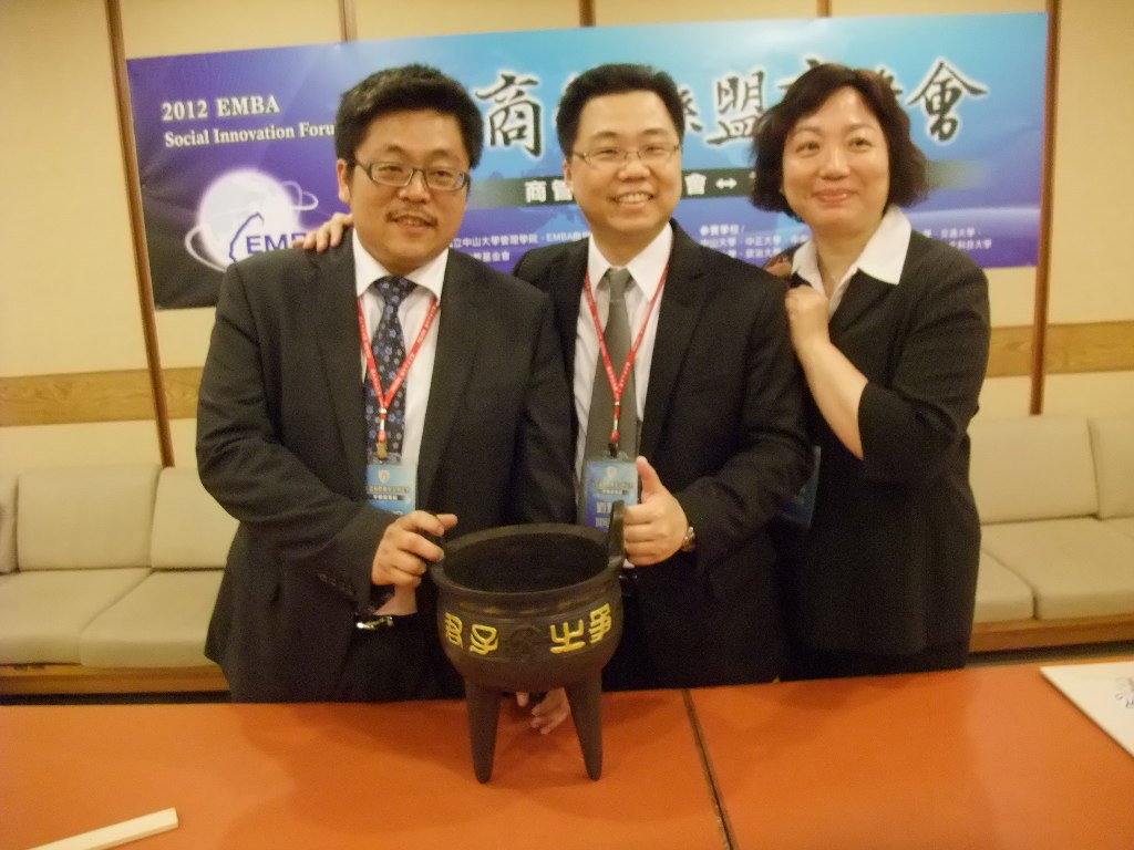 今天在高雄中山大學舉辦,來自全國EMBA的菁英們齊聚一堂,大家花了半年的角逐來此參加2012 EMBA商管聯盟高峰會元大盃個案分析總決賽,每隊的六位成員從今早接到主辦單位的信封中打開的中英文個案起,必須在高壓力的五個半小時內,完成個案分析,製作個案PPT,並上台簡報,接受評審的評分,最後經過一連串的考驗,我們這一組清華大學終於拿到國際組的冠軍,謝謝老師們這幾個月來的教導,謝謝組員的六人同心,其力斷金,奮戰到最後一刻,大家真棒!冠軍的君子之爭鼎到手,而8萬冠軍獎金將全數捐給公益團體。