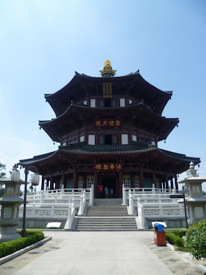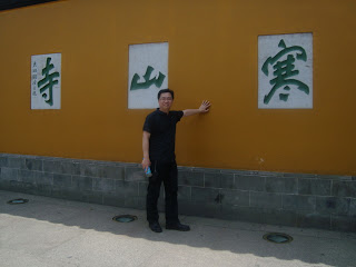 百聞不如一見!今天在江蘇省蘇州市抽空到「寒山寺」一遊,就是唐代詩人張繼《楓橋夜泊》『月落烏啼霜滿天,江楓漁火對愁眠,姑蘇城外寒山寺,夜半鐘聲到客船。』,詩中所指的江村橋、楓橋和寒山寺弄,隨河成市,因水成街,依寺成鎮,充分體驗了獨特的水鄉風韻,和江南的園林風格!在我的身後為世界最大的詩碑,碑上刻著《楓橋夜泊》的詩句!