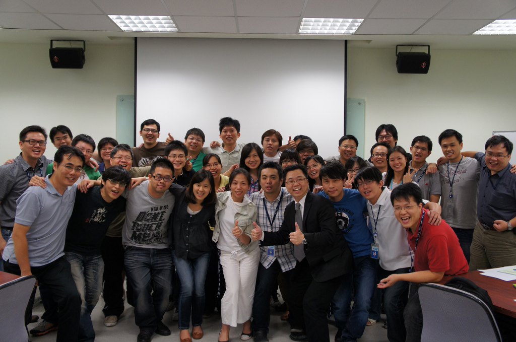 針對產品經理、研發與客服工程師設計的「技術簡報實務」培訓課程,三十三位竹科工程師們今天週六一整天奮戰不懈,讓自己持續進步,讓團隊合作無間,大家手搭手肩並肩進行全班合照,這樣的團隊合作精神看了真叫人感動,大家真的很棒!今天錯過了清大EMBA學期期末報告,由衷感謝同學們的鼎力相助!